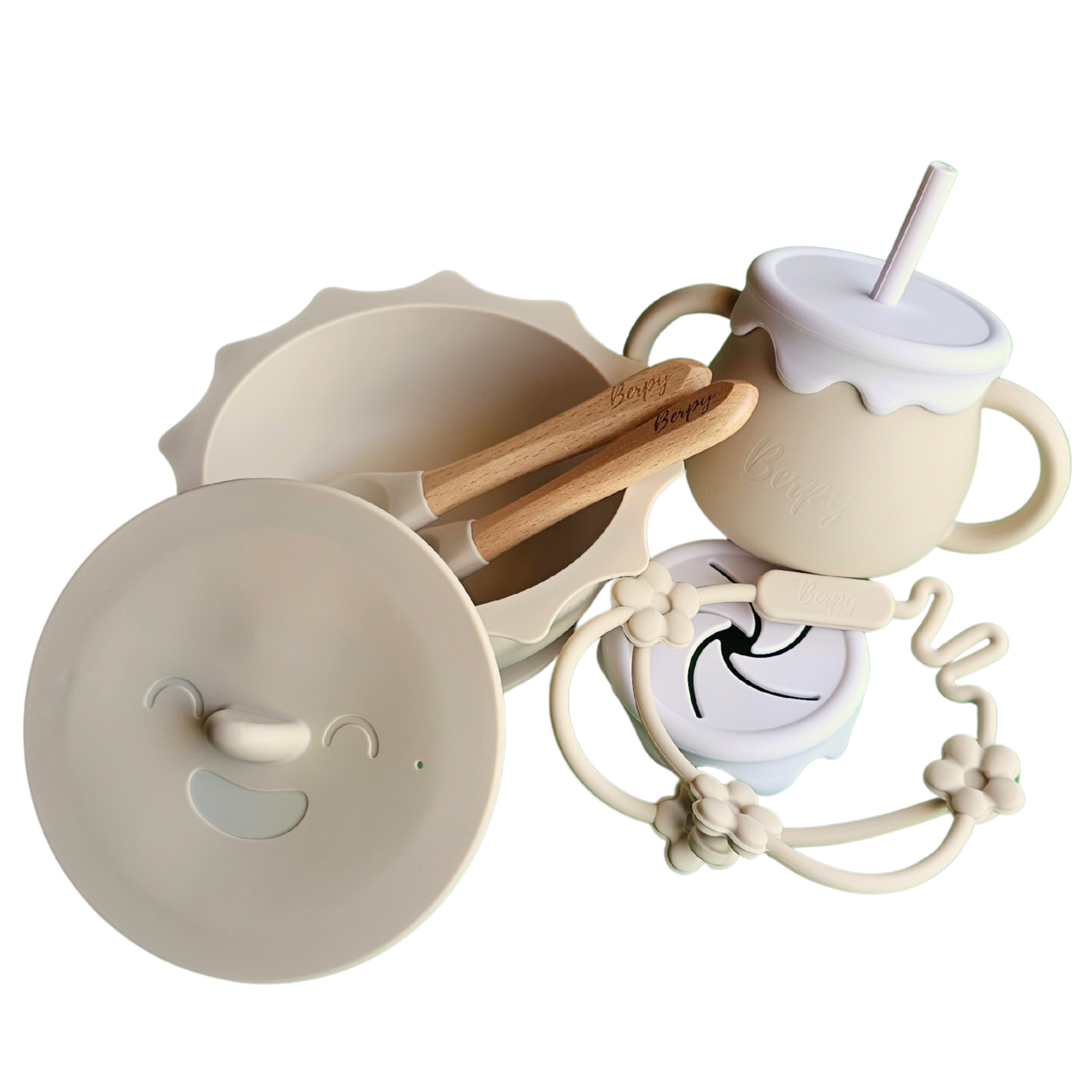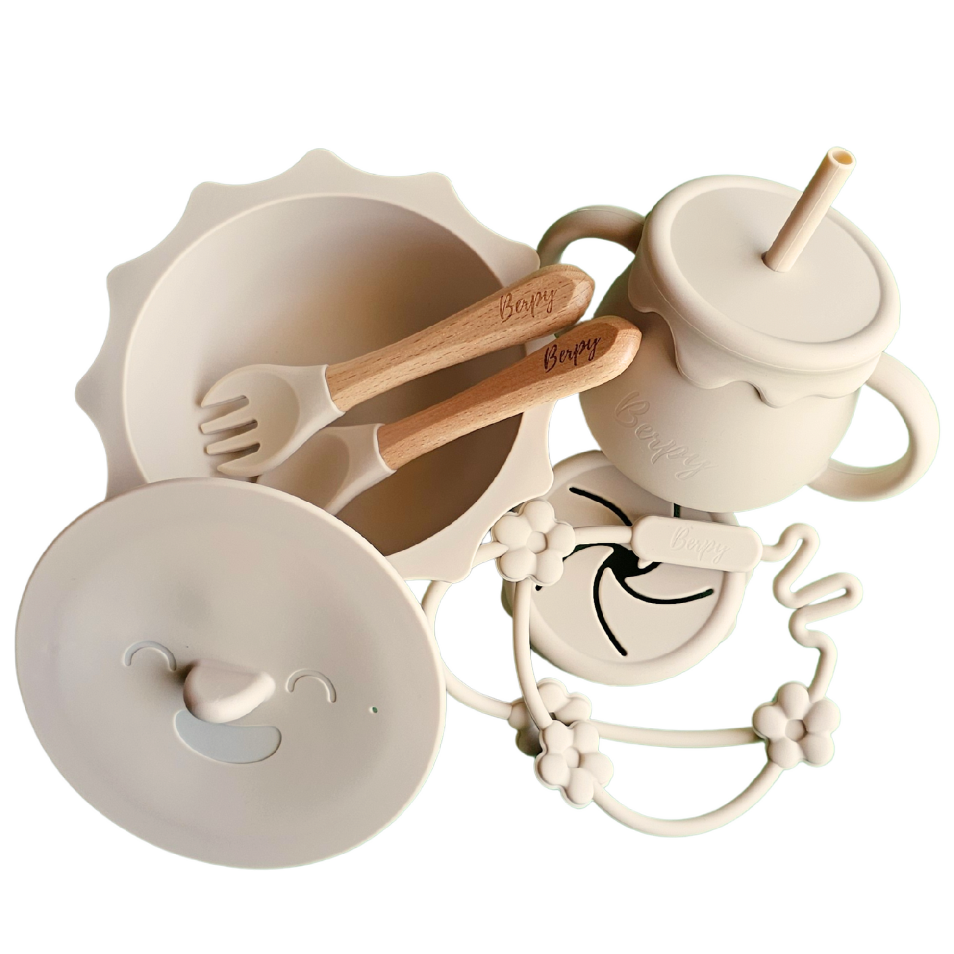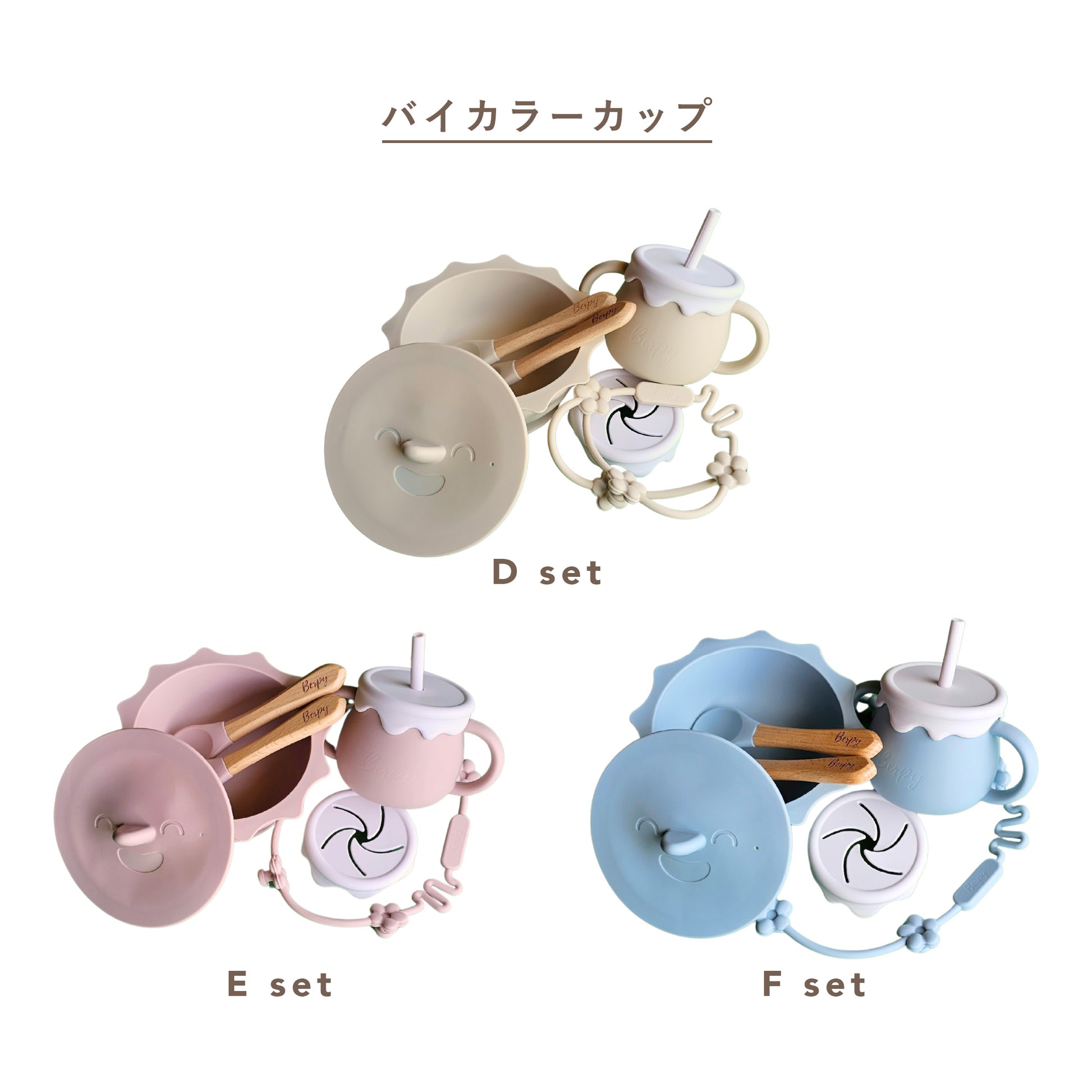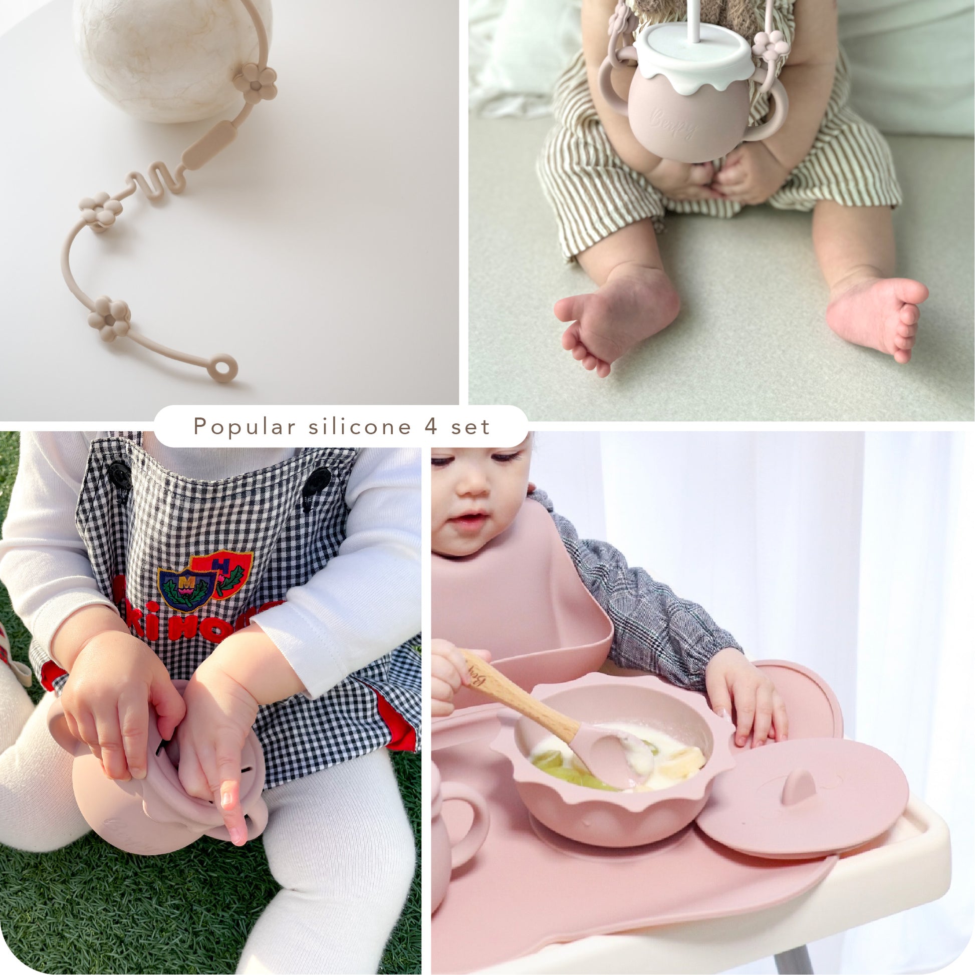 - 国内ベビーブランド【 Berpy (バーピー) 】 お天気をモチーフにしたシリコン食器、シリコンマグ、スプーン・フォーク、クッカストラップの4点セットです。