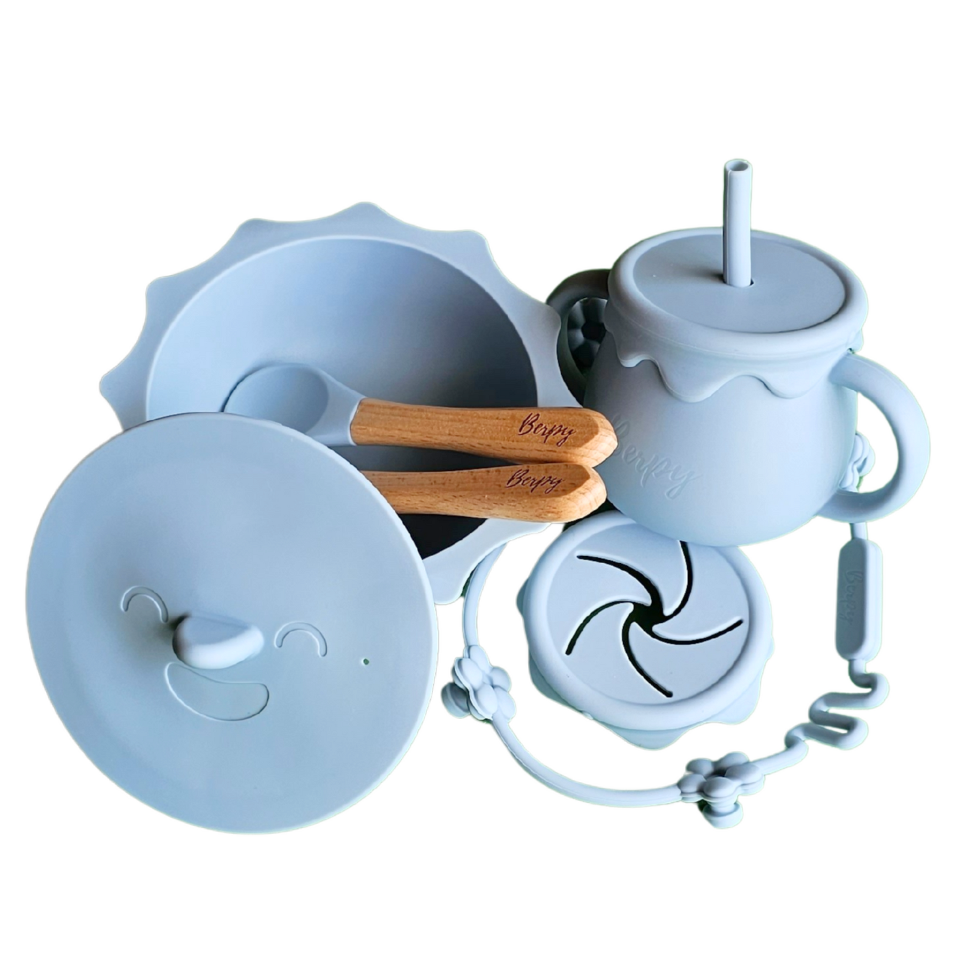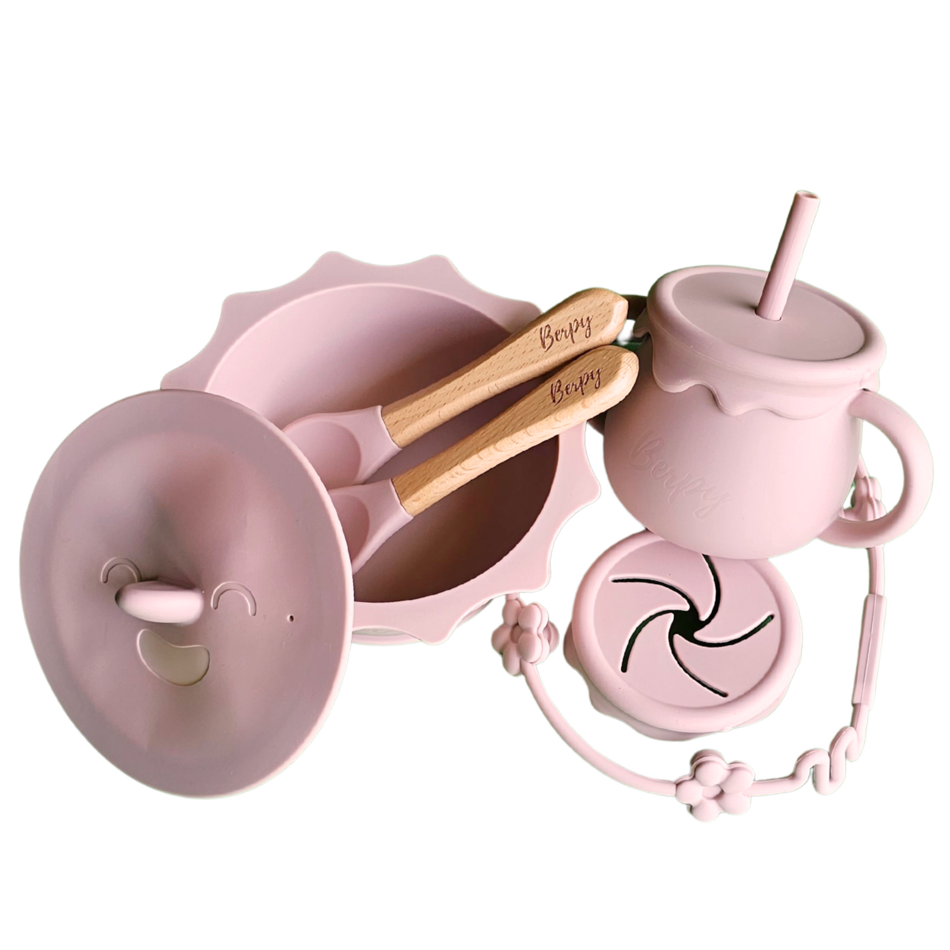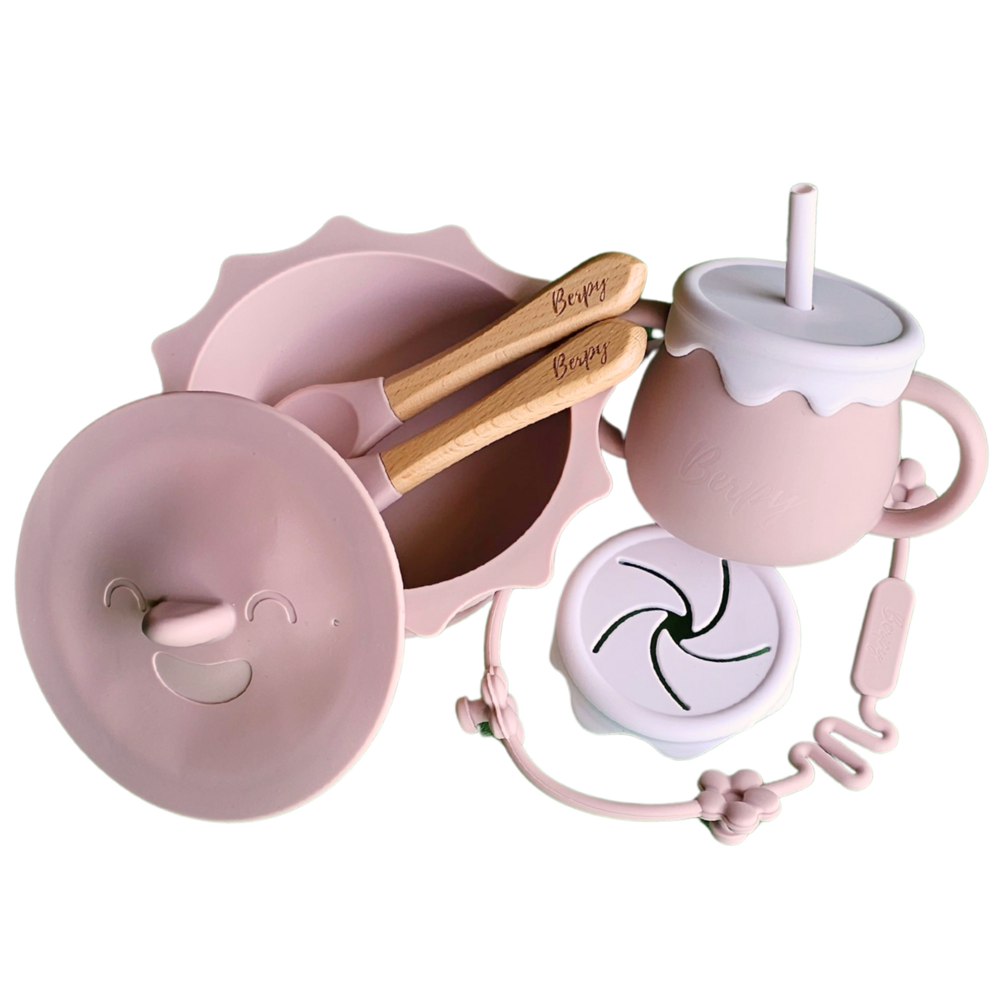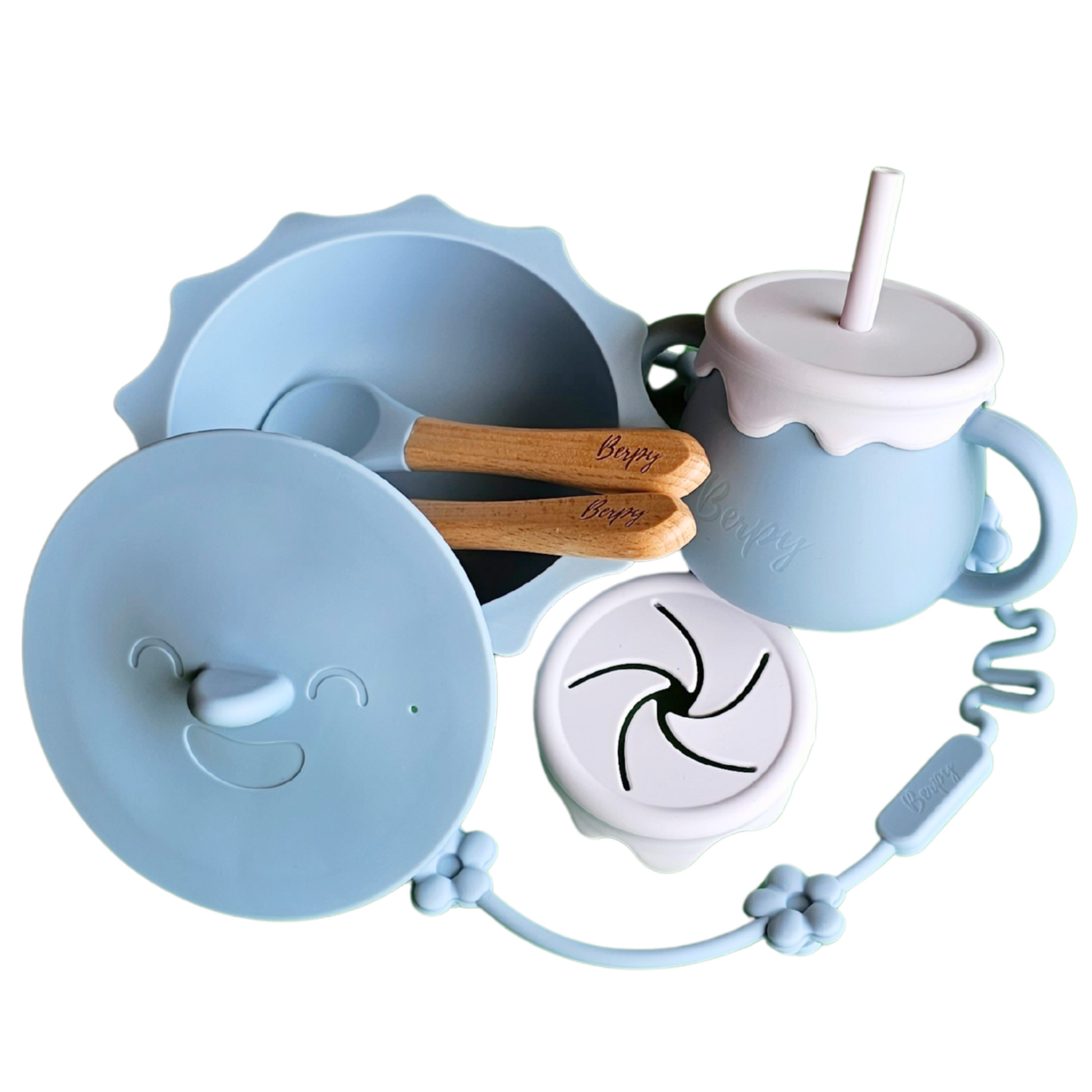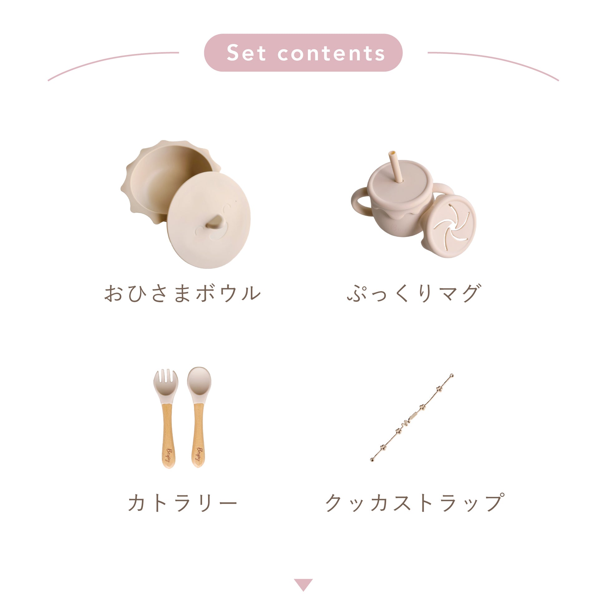 - 国内ベビーブランド【 Berpy (バーピー) 】 お天気をモチーフにしたシリコン食器、シリコンマグ、スプーン・フォーク、クッカストラップの4点セットです。