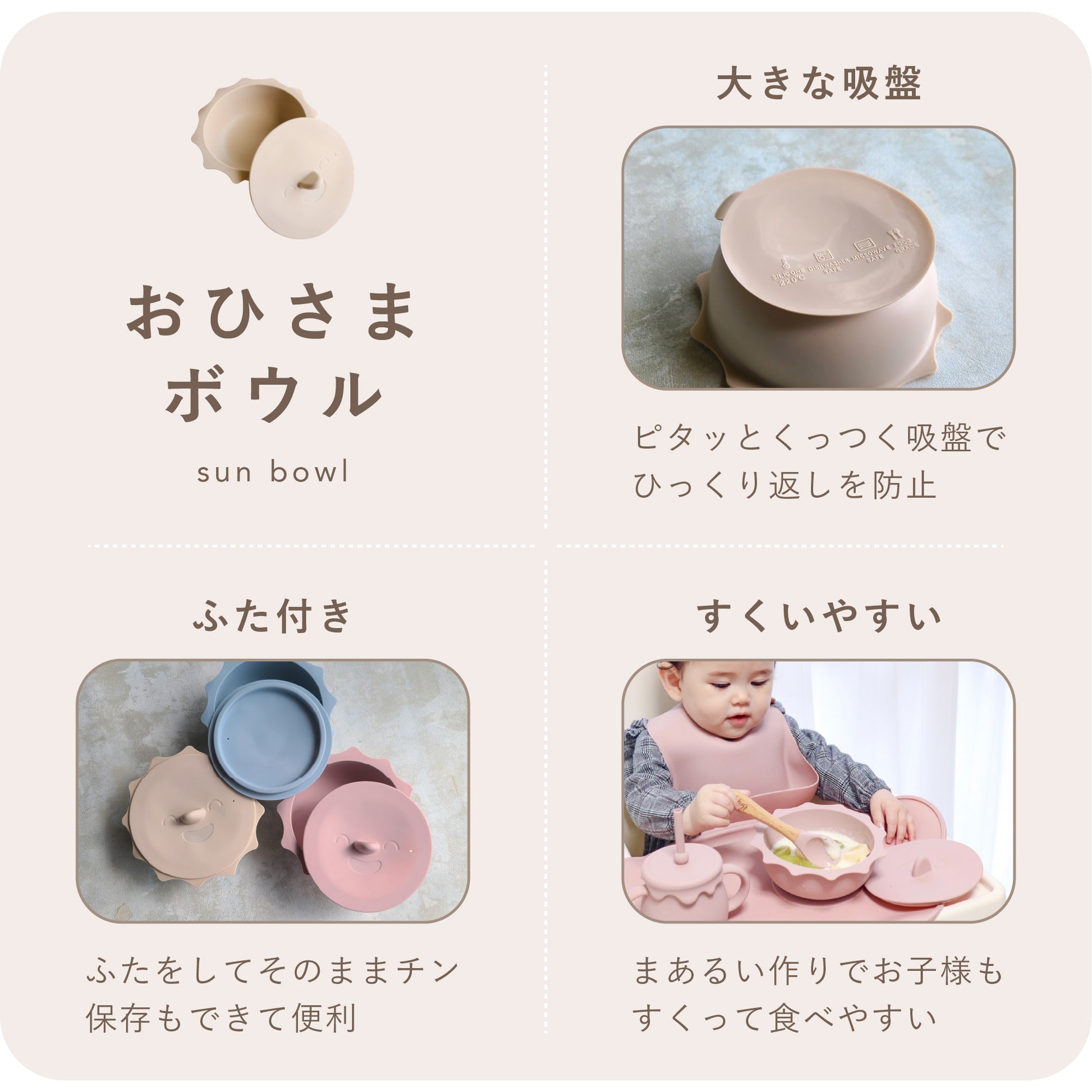 - 【お日様ボウル】 ニッコリ笑った蓋が毎日を楽しくするつきのシリコンボウルです。 毎日の離乳食を楽しい時間に。