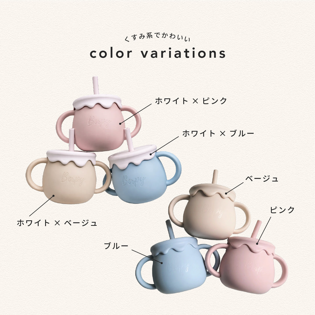 ストロー練習から、コップでの直飲み、お出かけ時のお菓子入れまで。フタを付け替えるだけで3つの役割をこなします。赤ちゃんの成長に合わせて使い方が広がる、長く愛用できるセットです。